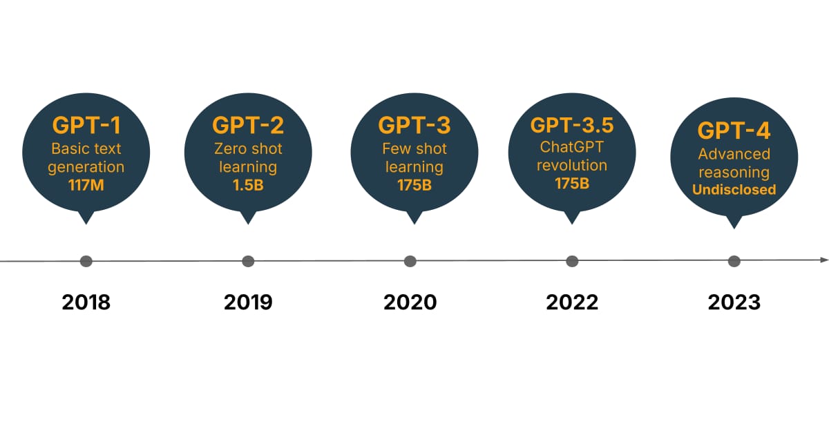To understand how LLMs developed their remarkable capabilities, we need to look at the evolution of one of the most influential model families: GPT (Generative Pre-trained Transformer). The GPT series demonstrates how increasing model size and training data can unlock entirely new capabilities that weren't present in smaller versions.